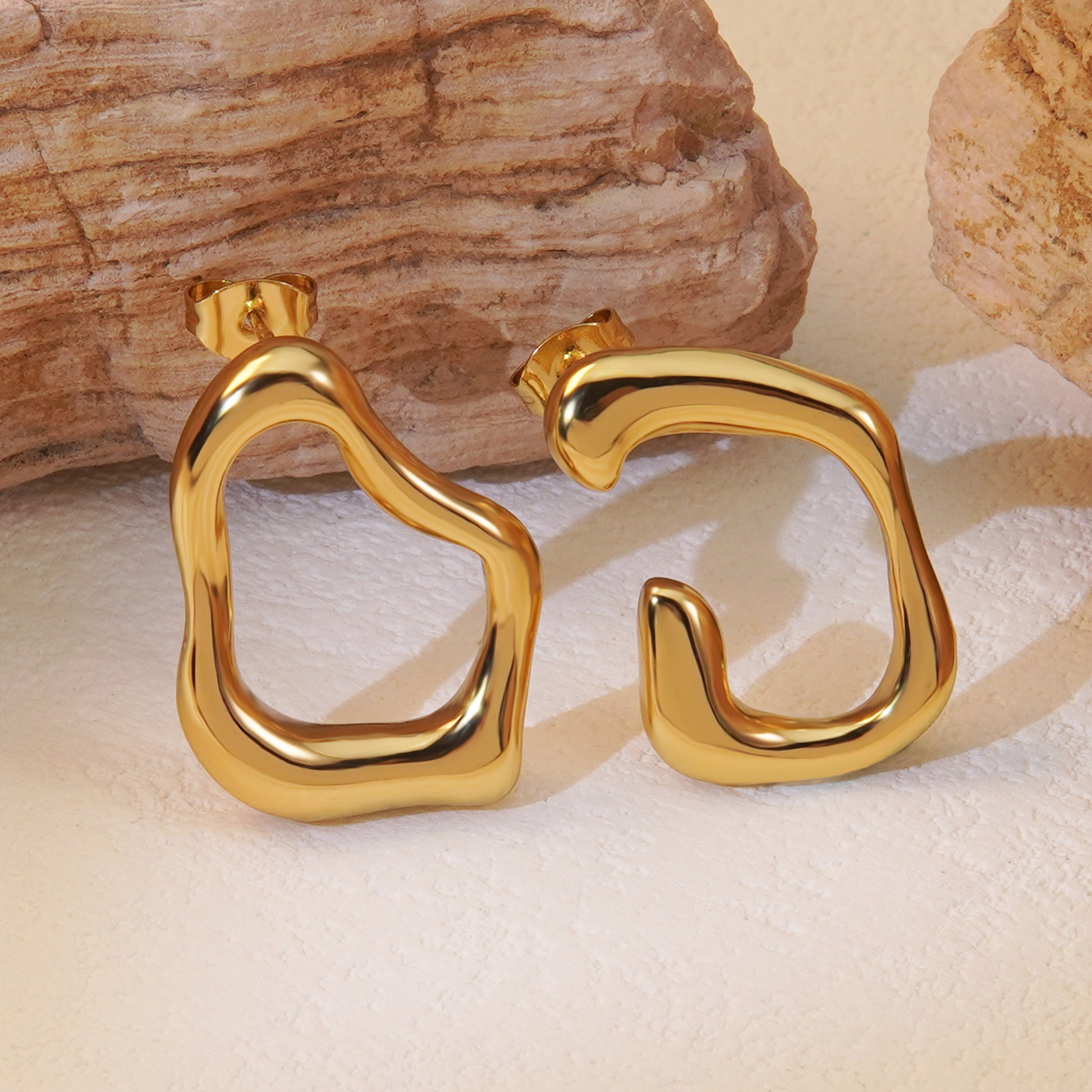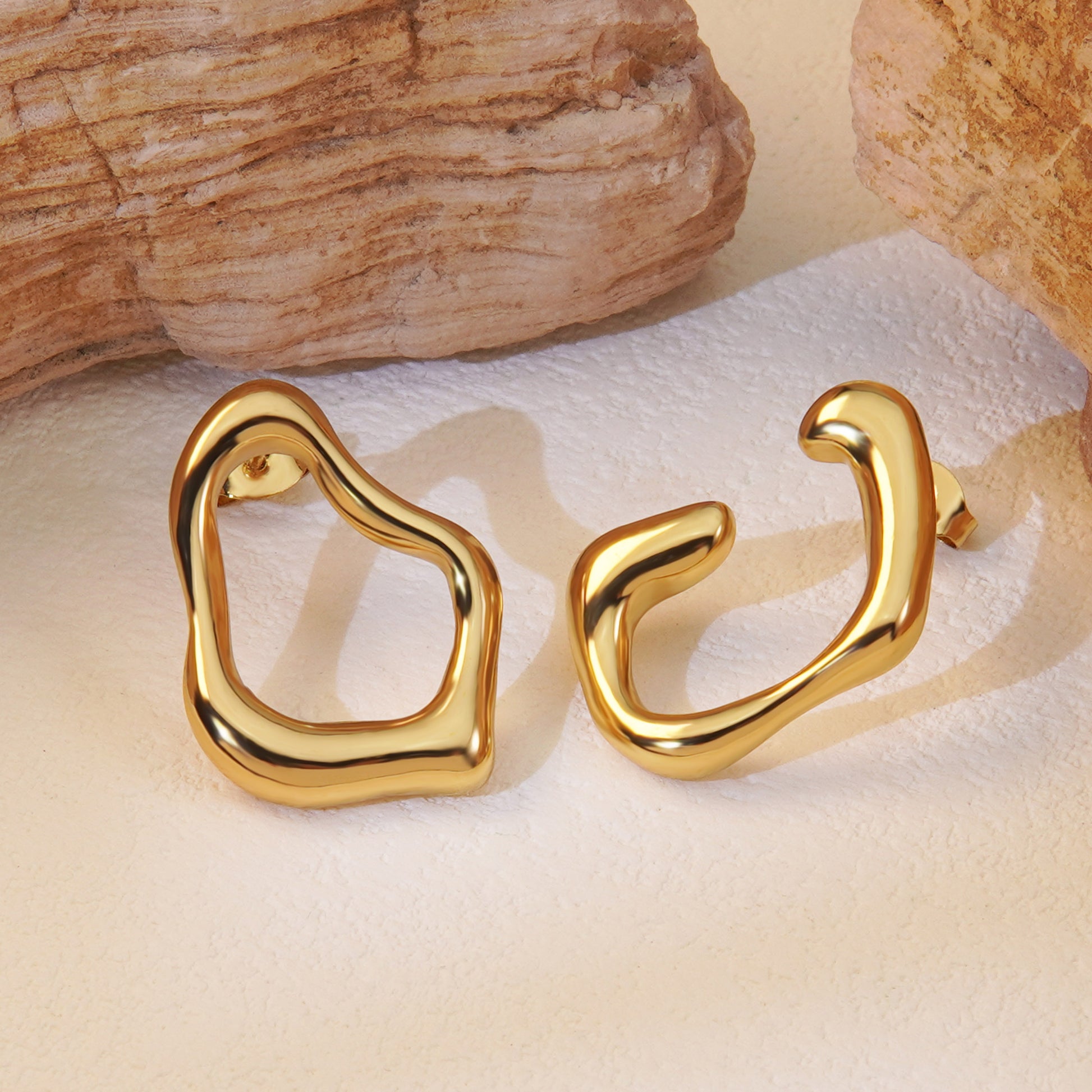 Modern, ausdrucksstark und elegant unregelmäßig: Die „Bold Wave“-Ohrringe in glänzender Goldoptik überzeugen mit ihrer fließenden, organischen Form. Sie wirken wie kleine Skulpturen am Ohr und setzen einen edlen, künstlerischen Akzent – perfekt für alle, die minimalistisches Design mit besonderem Twist lieben.