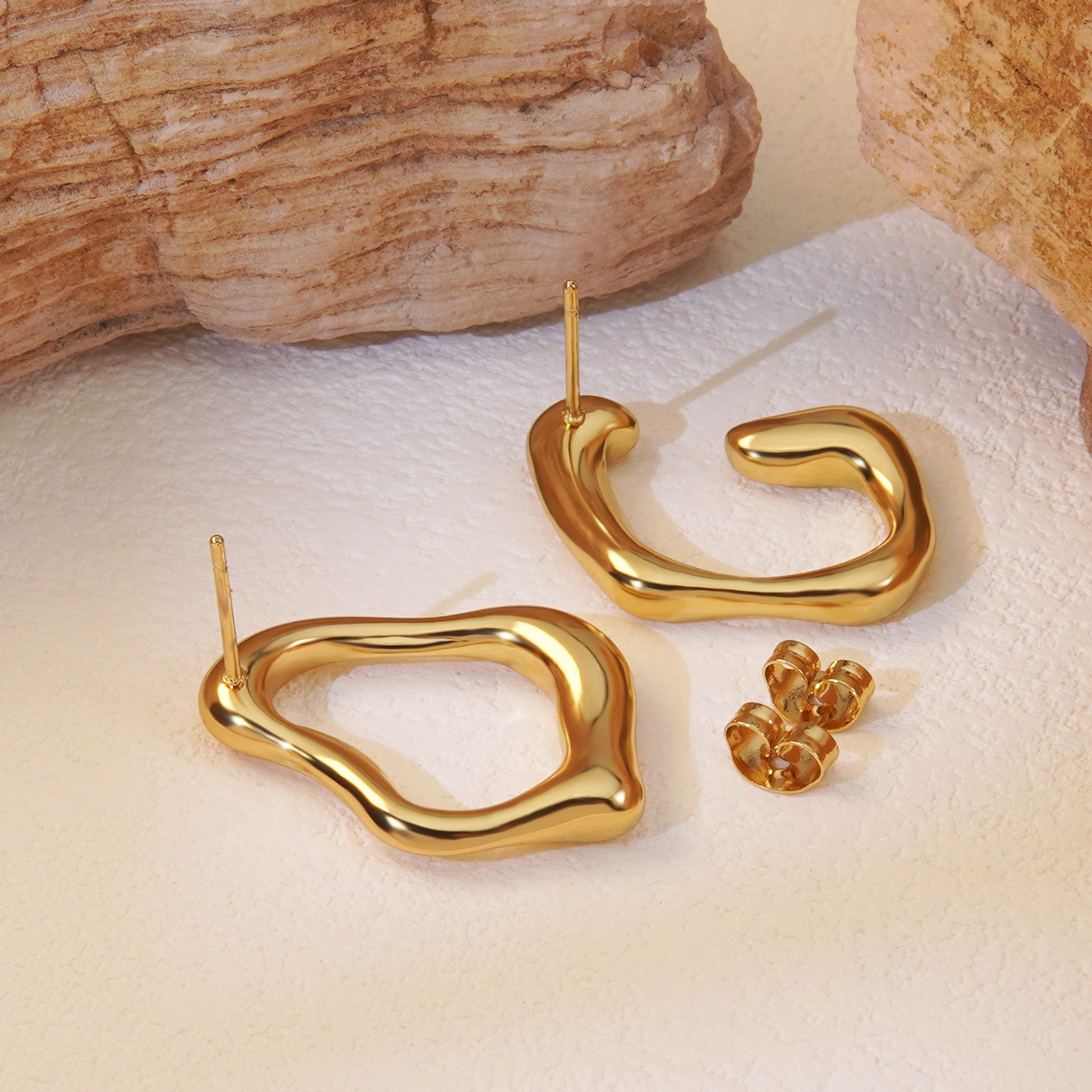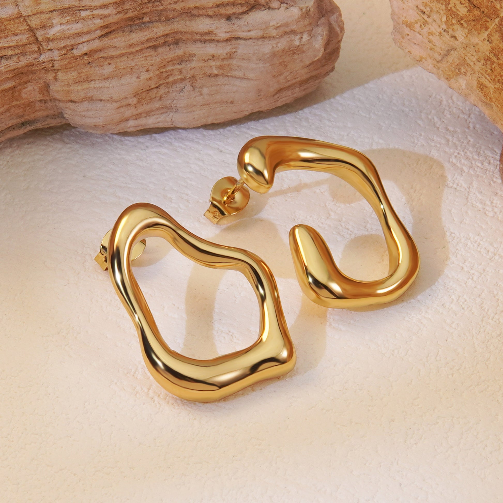 Ohrringe „Bold Wave“ – Organische Statement-Creolen in Goldoptik