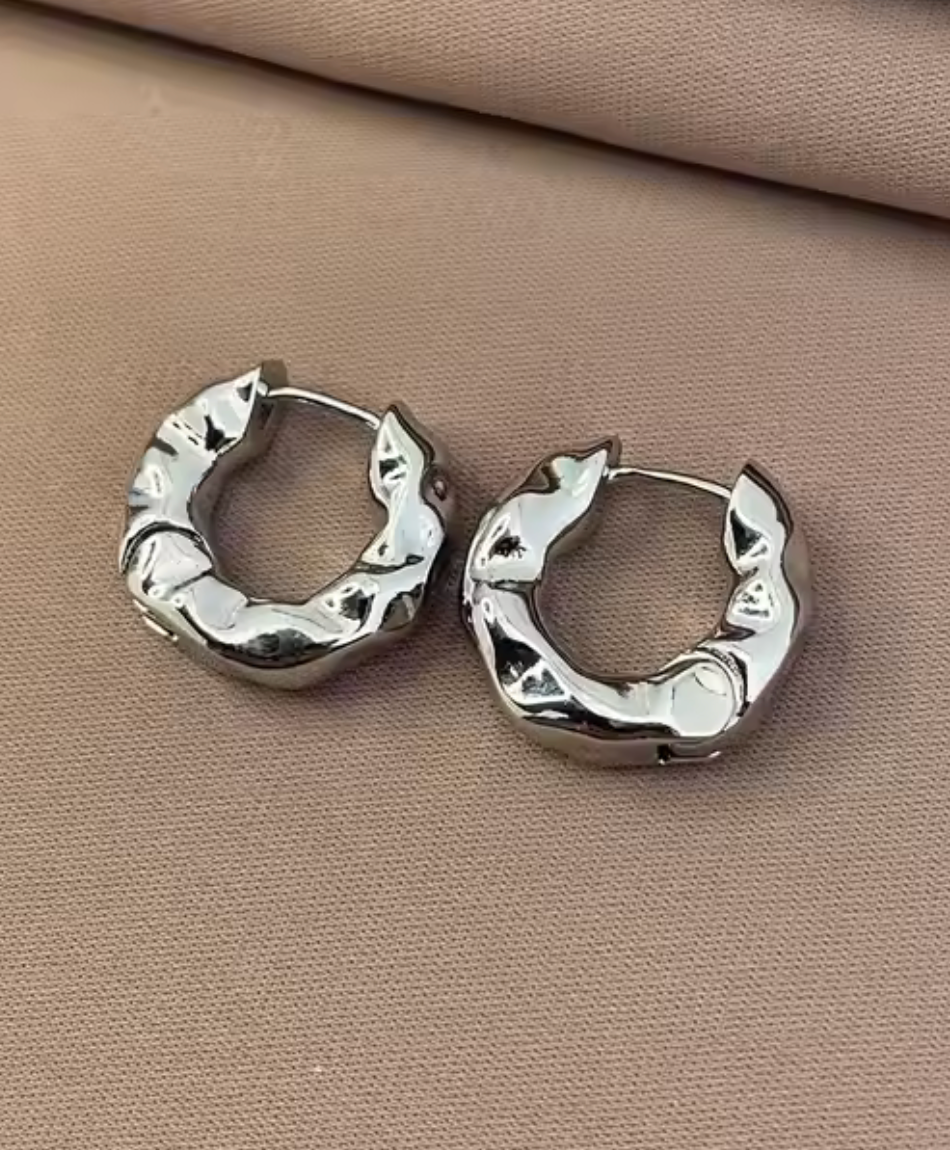 Diese ausdrucksstarken Creolen überzeugen mit einem kunstvoll geschmolzenen Design, das an fließendes Metall erinnert. Ihre unregelmäßige, glänzende Oberfläche verleiht jedem Look einen Hauch Avantgarde und lässt sich sowohl elegant als auch casual kombinieren.