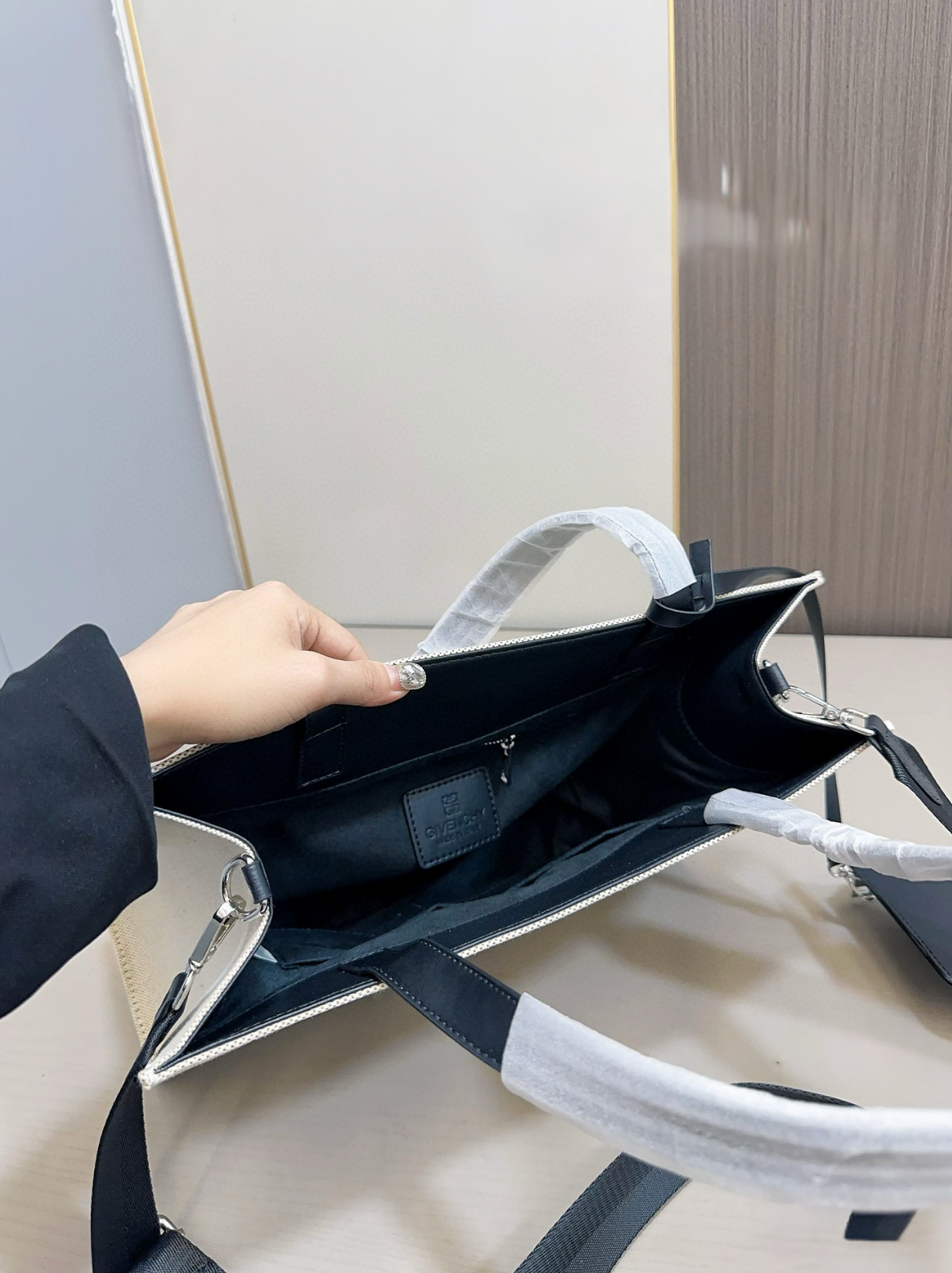 Setze ein stilvolles Statement mit dieser exklusiven GIVENCHY Tote Bag in edlem Schwarz. Der markante Regenbogen-Schriftzug „GIVENCHY PARIS“ verleiht der Tasche eine moderne, frische Note – perfekt für Fashion-Liebhaber, die Luxus und Individualität vereinen möchten.