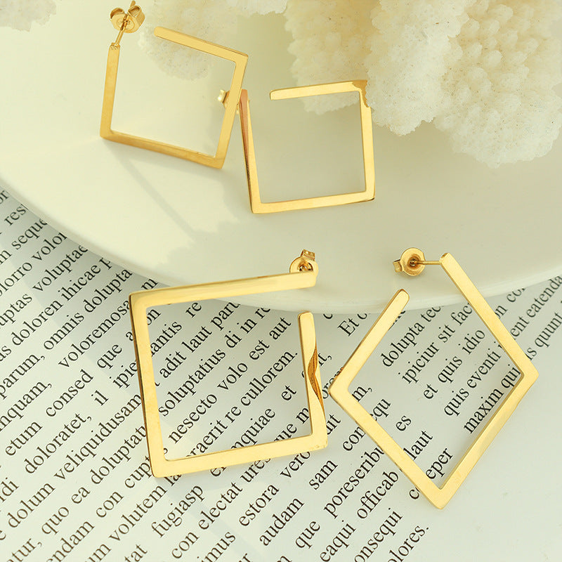 Mit ihrem klaren, eckigen Design stehen diese geometrischen Ohrringe für modernen Minimalismus mit maximaler Wirkung. Der schlichte, quadratische Rahmen wirkt leicht und elegant zugleich – ein Must-have für alle, die mutige Formen lieben.