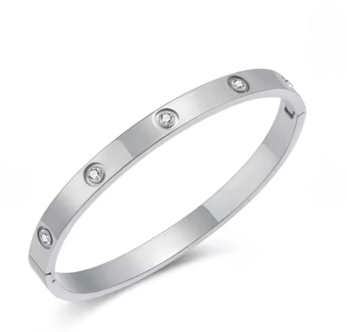 Ein Hauch von Luxus für dein Handgelenk: Der Armreif „Lumière“ vereint klares Design mit funkelnden Details. Gefertigt aus hochwertigem Edelstahl und besetzt mit mehreren glänzenden Zirkonia-Steinen, bringt er in jeder Farbvariante – Silber, Gold oder Roségold – schlichte Eleganz und stilvolle Raffinesse in dein Outfit.
