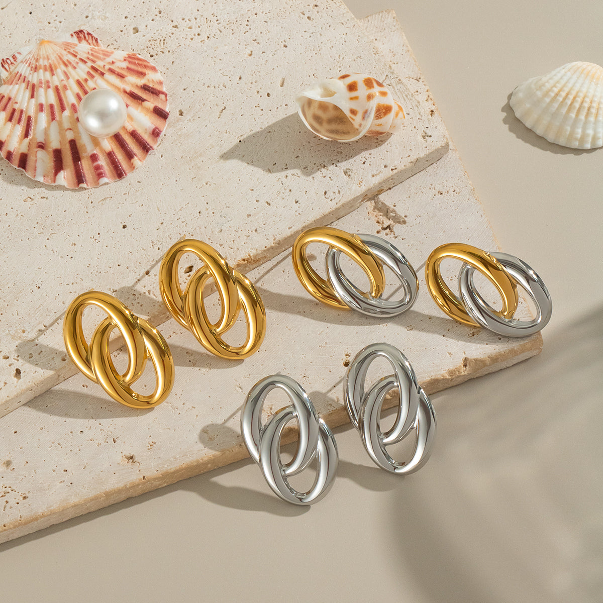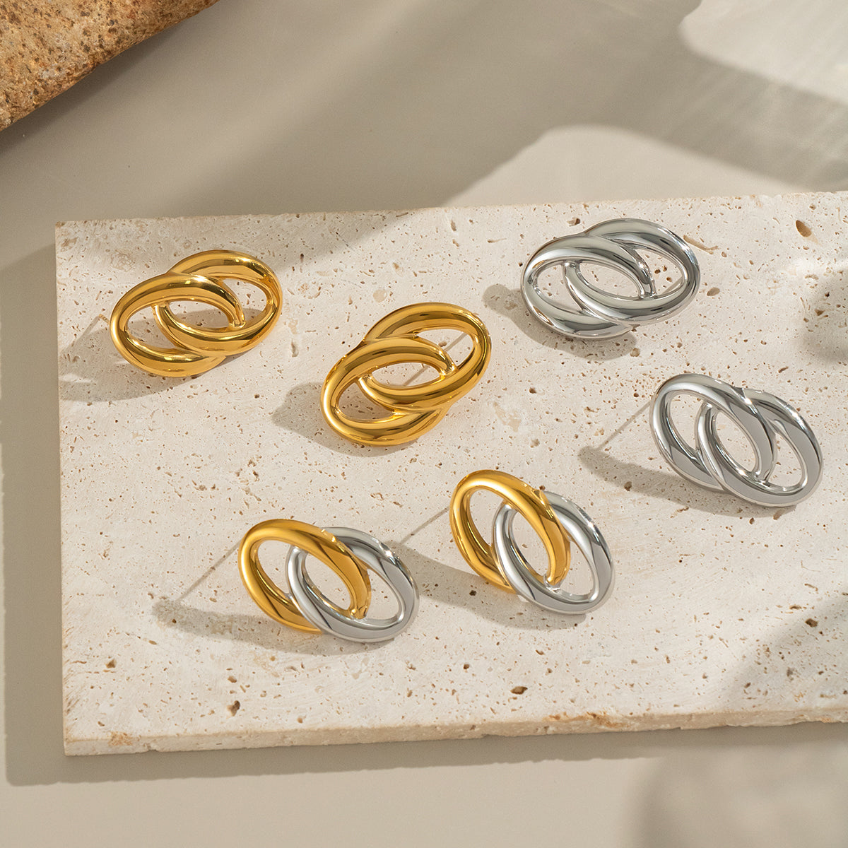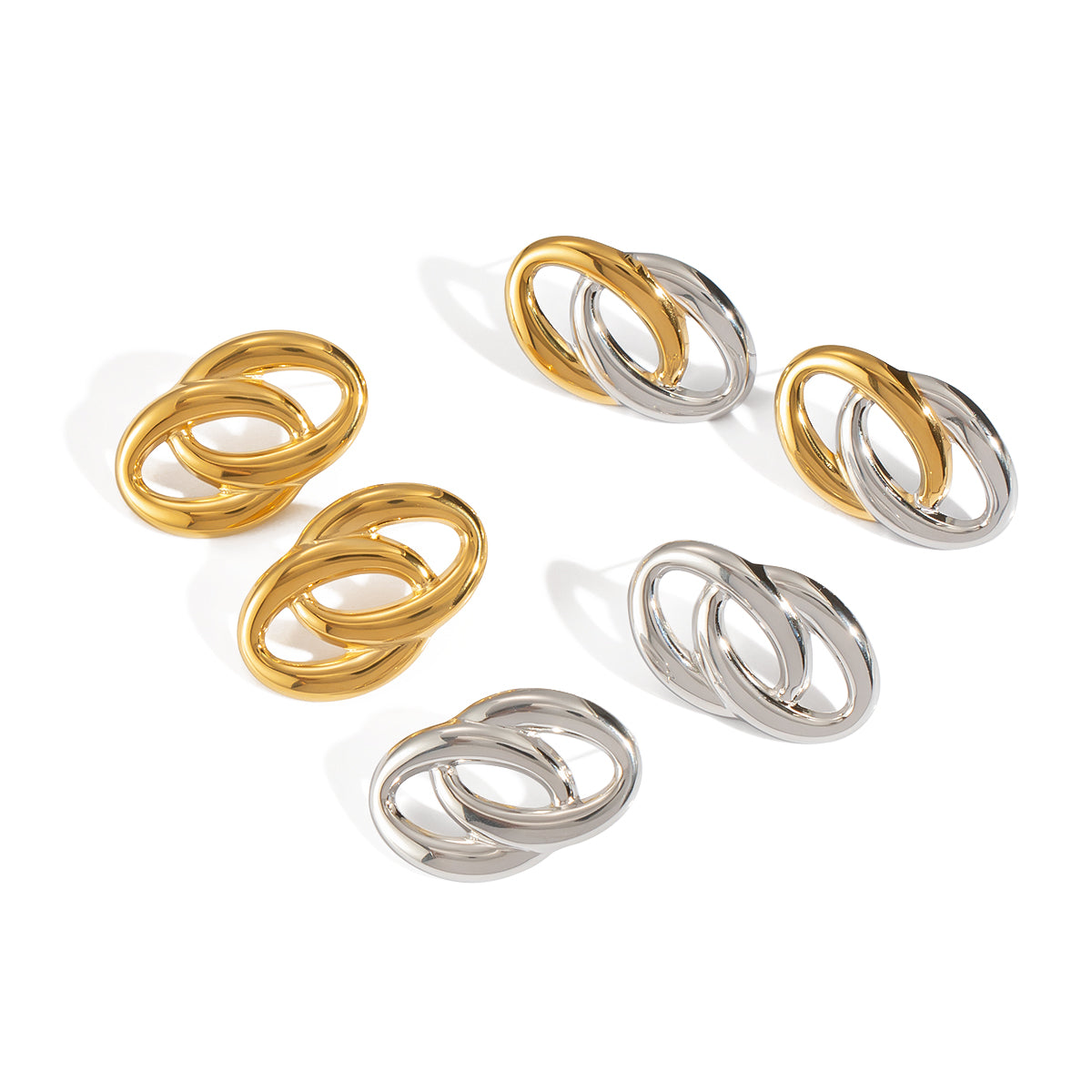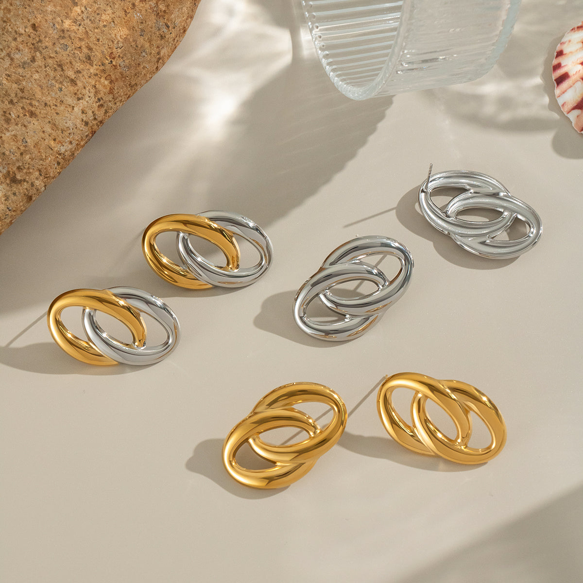 Modern, elegant und kraftvoll: Die „Link Luxe“-Ohrringe bestehen aus zwei ineinander verschlungenen Ovalen und sind in drei stilvollen Varianten erhältlich – Gold, Silber oder Bicolor (Gold-Silber). Der glänzende Look und das harmonische Design machen diese Stecker zu einem vielseitigen Highlight – ideal für minimalistische Outfits mit Stil.
