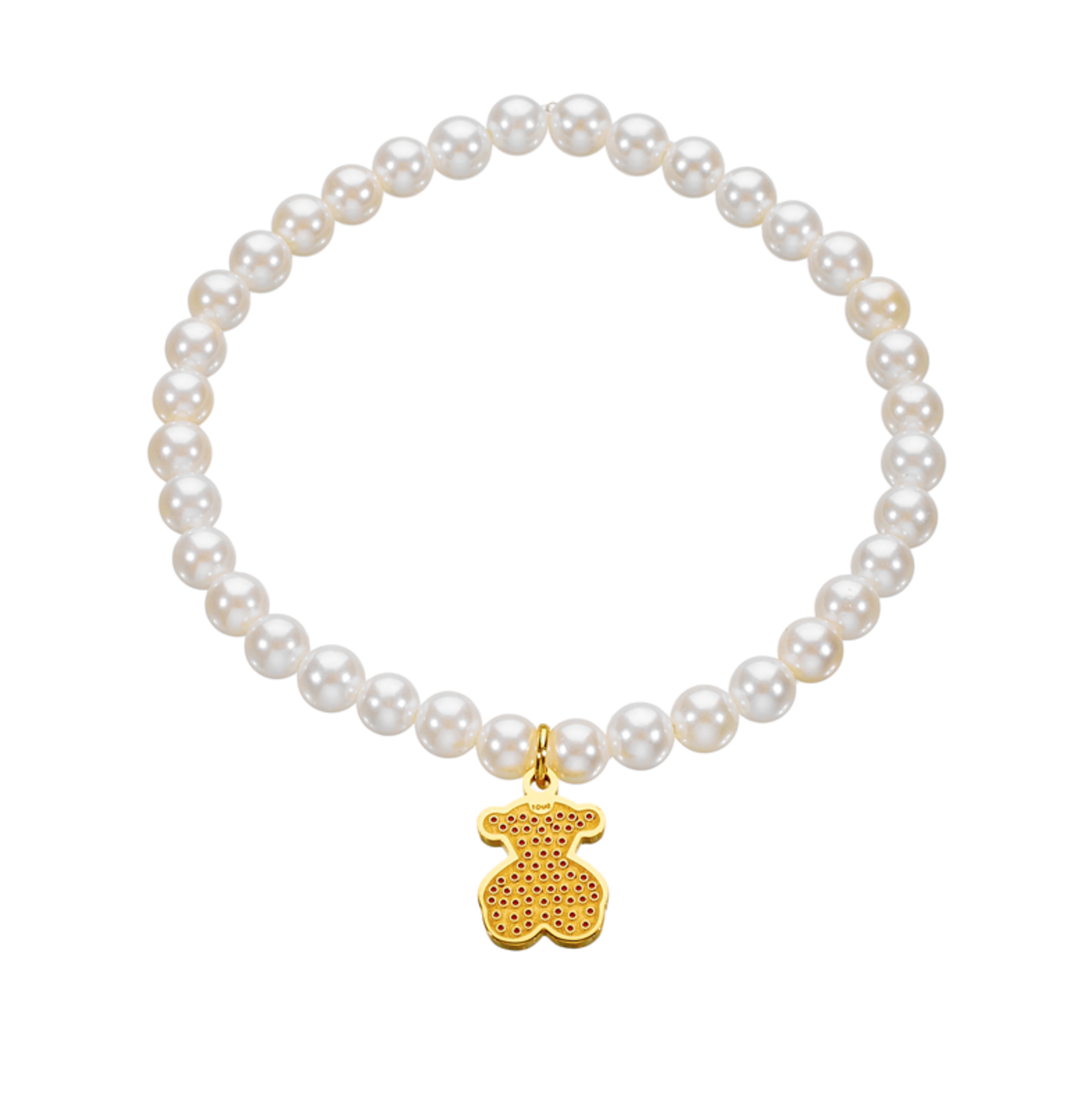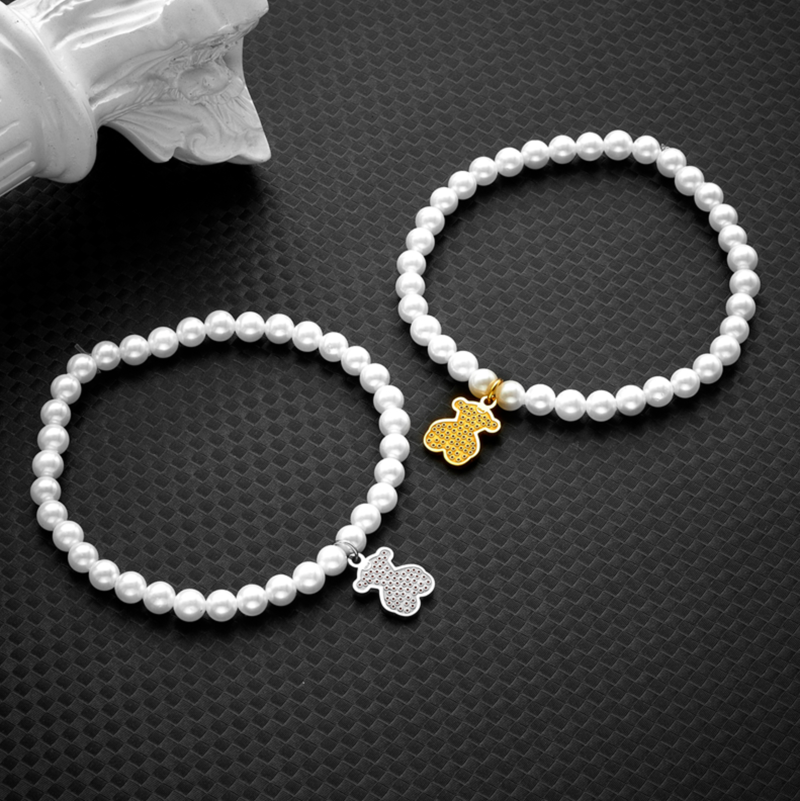 Dieses zarte Armband aus feinen, schimmernden Perlen verleiht deinem Look eine zeitlose Eleganz – mit einem charmanten Twist: Ein goldfarbener Bären-Anhänger sorgt für eine verspielte Note und macht das Schmuckstück zu einem echten Hingucker.