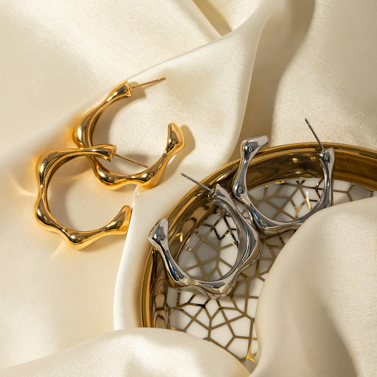 Sculptural Chic. Diese chunky Creolen in Wellenform sind ein absoluter Hingucker – kraftvoll, modern und trotzdem elegant.