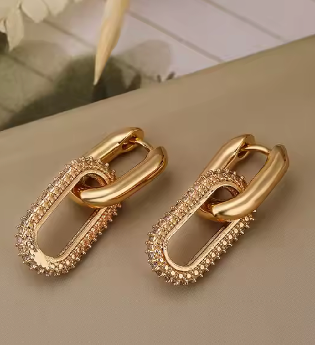 Glieder-Ohrringe „Sparkle Link“ – Gold & Silber