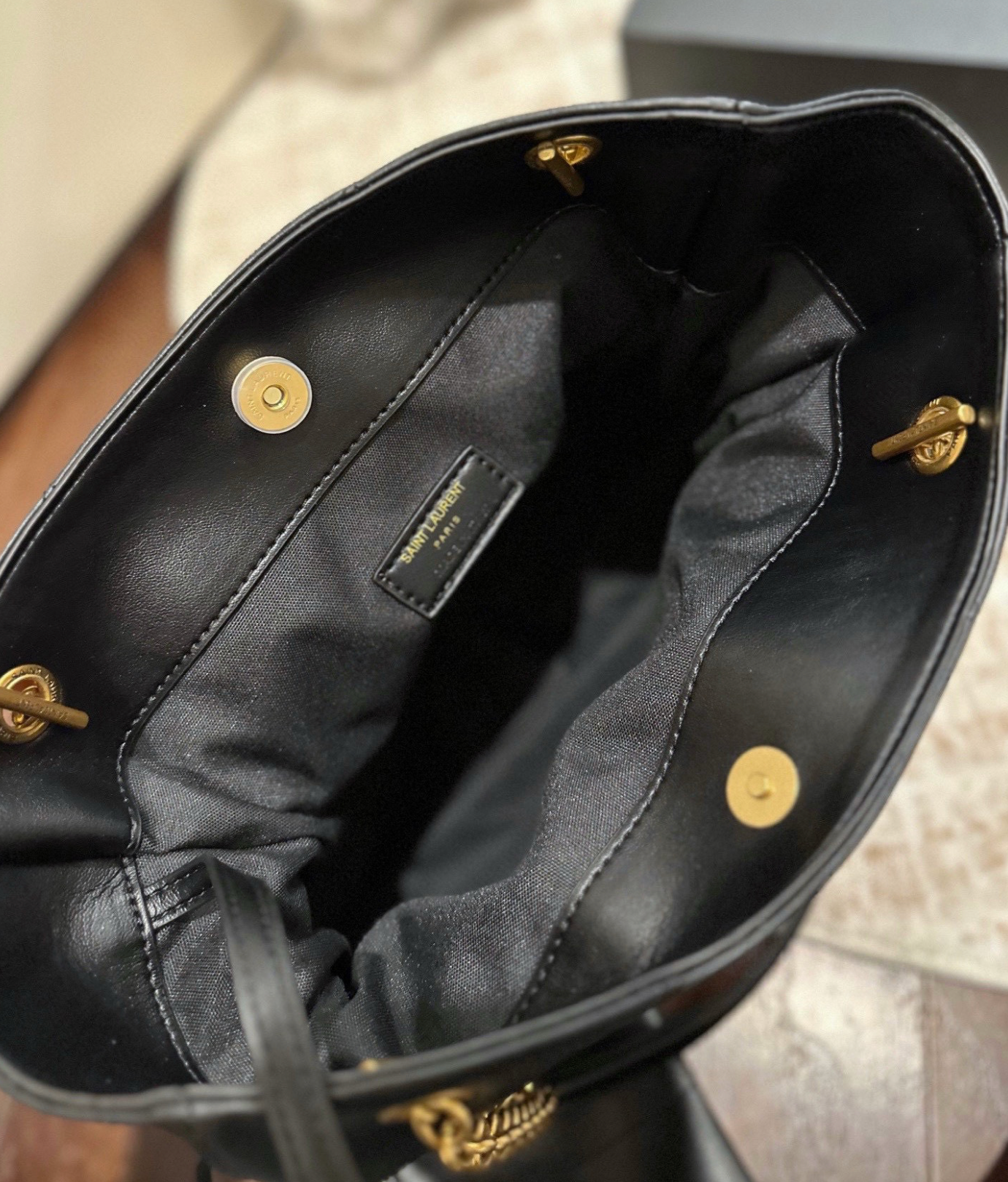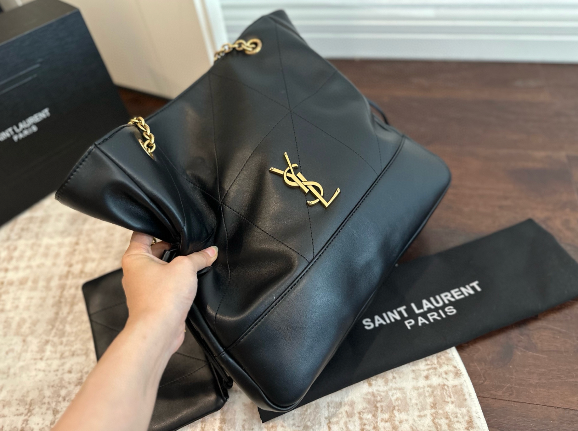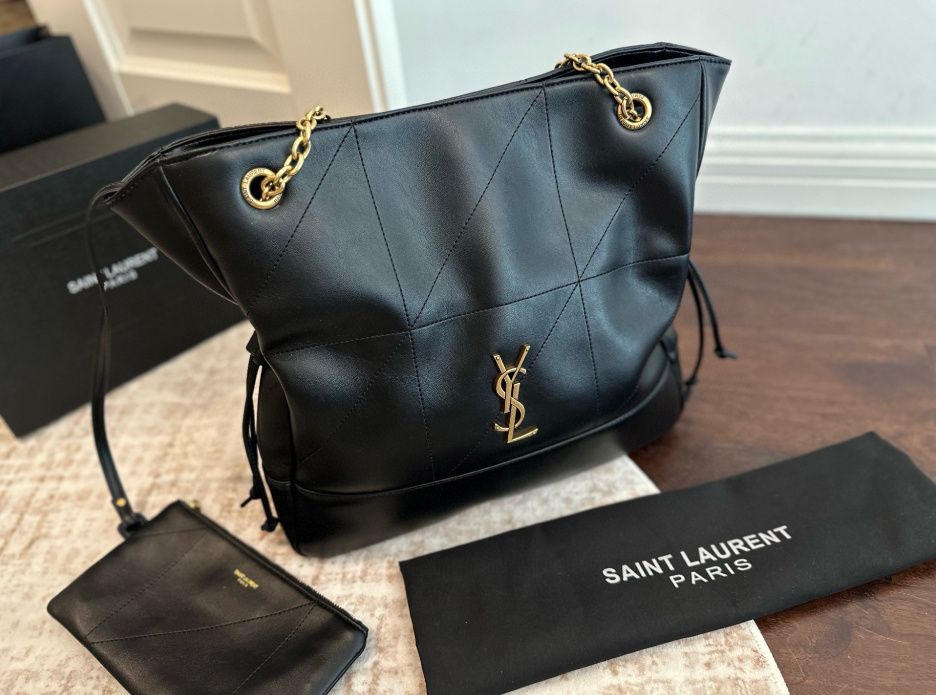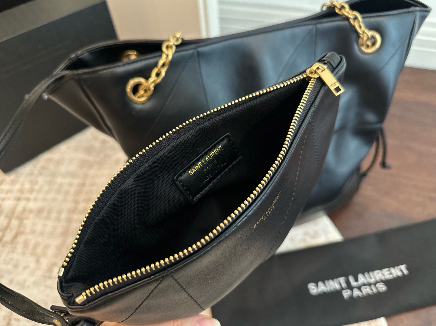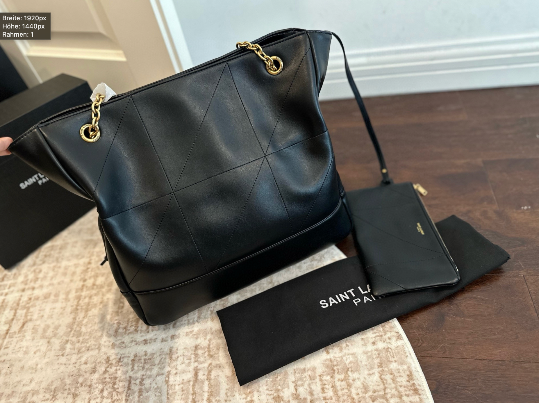 Dank des großzügigen Innenraums und des praktischen Zusatztäschchens bleibt alles gut organisiert – ob unterwegs, beim Shopping oder im Büro. Die goldfarbenen Kettendetails sorgen für einen Hauch von Glamour.